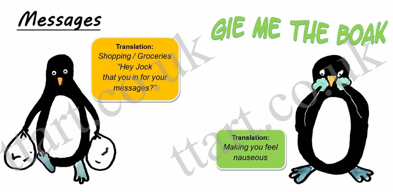 A fun-filled book for all the family – 28 pages with Penguins and funny Scottish / Glasgow sayings.